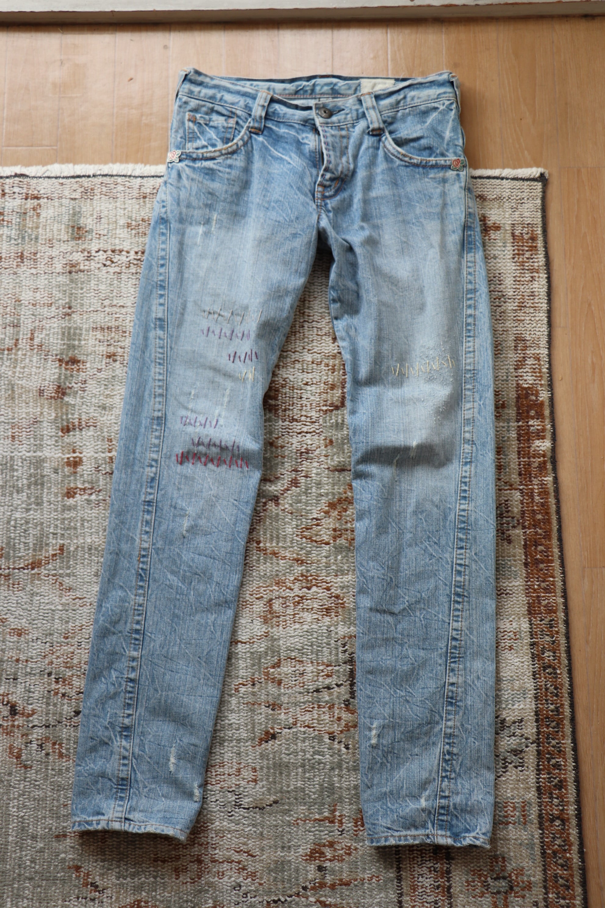 刺繍が施されたスキニーパンツ