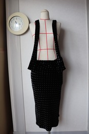 肩紐がたっぷりと垂れる、セクシーなデザインにベロアのキュートなドット生地
