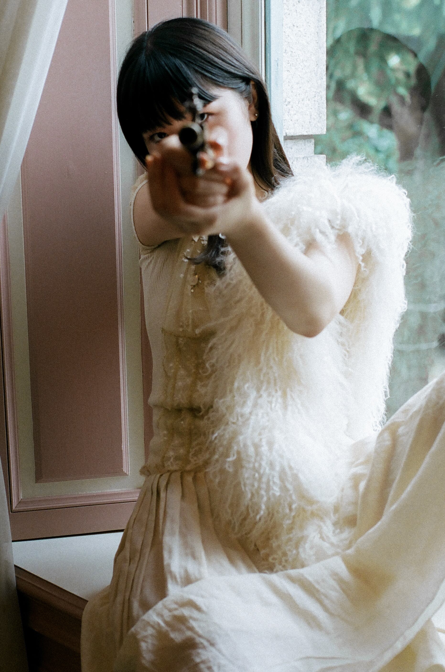 (袖以外は伸縮性のある生地で、体にフィットします。)