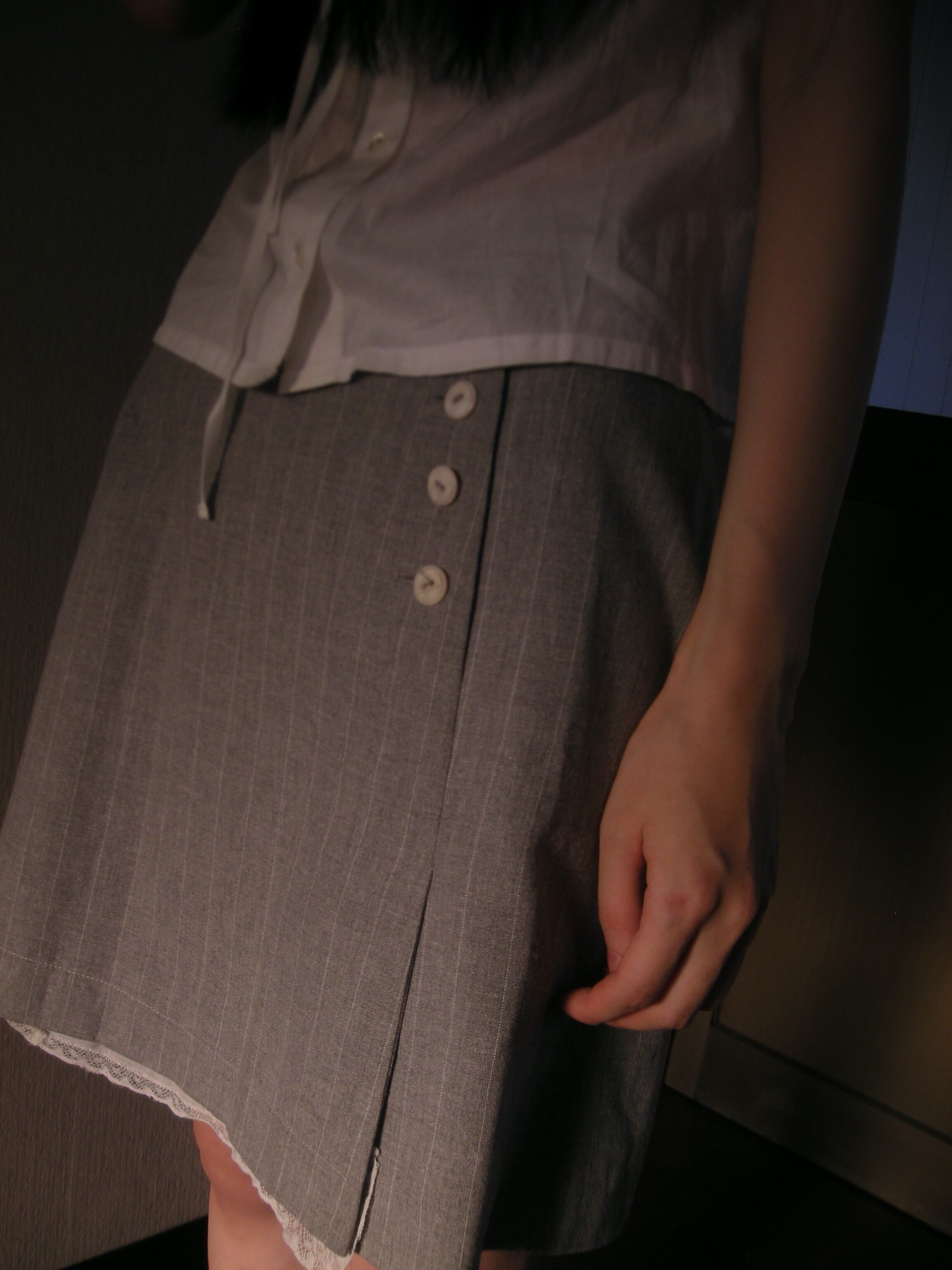 00's la cityのスカートにアンティークレースを縫い付けました。